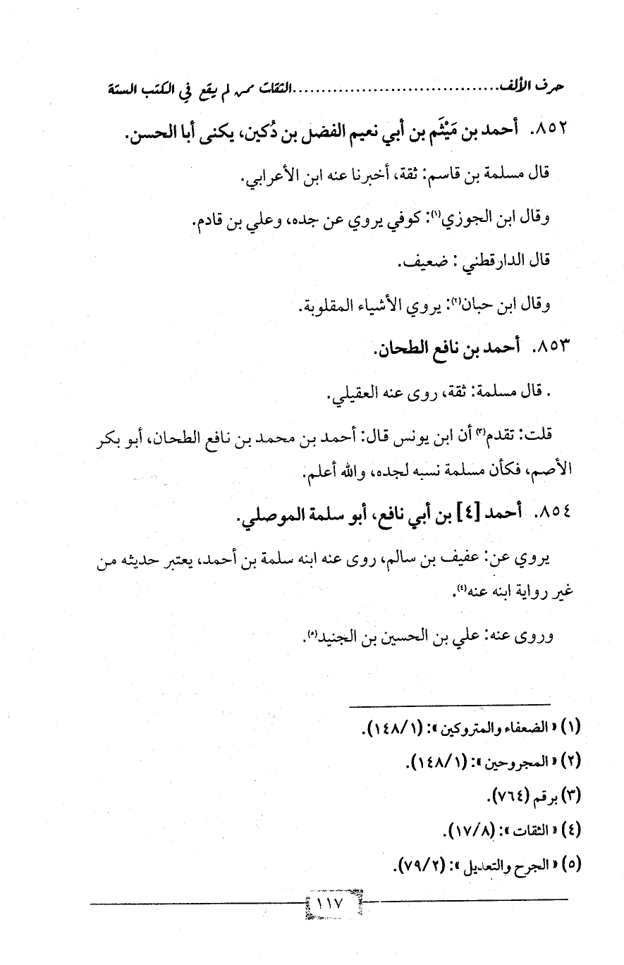 852 - أحمد بن مَيْثَم بن أبي نعيم الفضل بن دُكين، يكنى أبا الحسن.