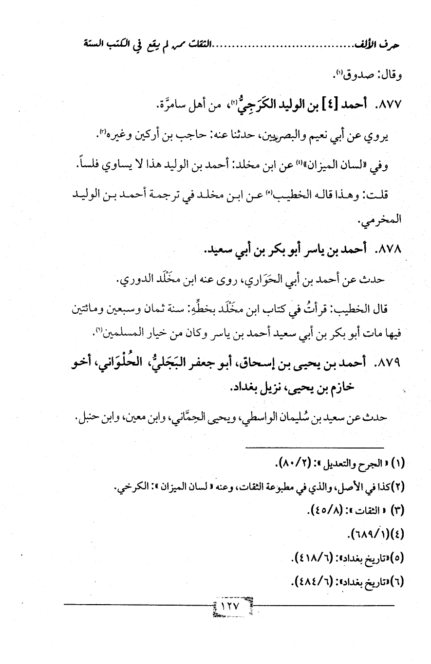 877 - أحمد [4] بن الوليد الكَرَجِيُّ (¬2)، من أهل سامرَّة.