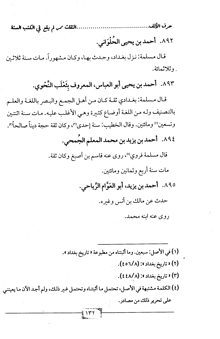 893 - أحمد بن يحيى أبو العباس، المعروف بِثَعْلَب النَّحْوي.