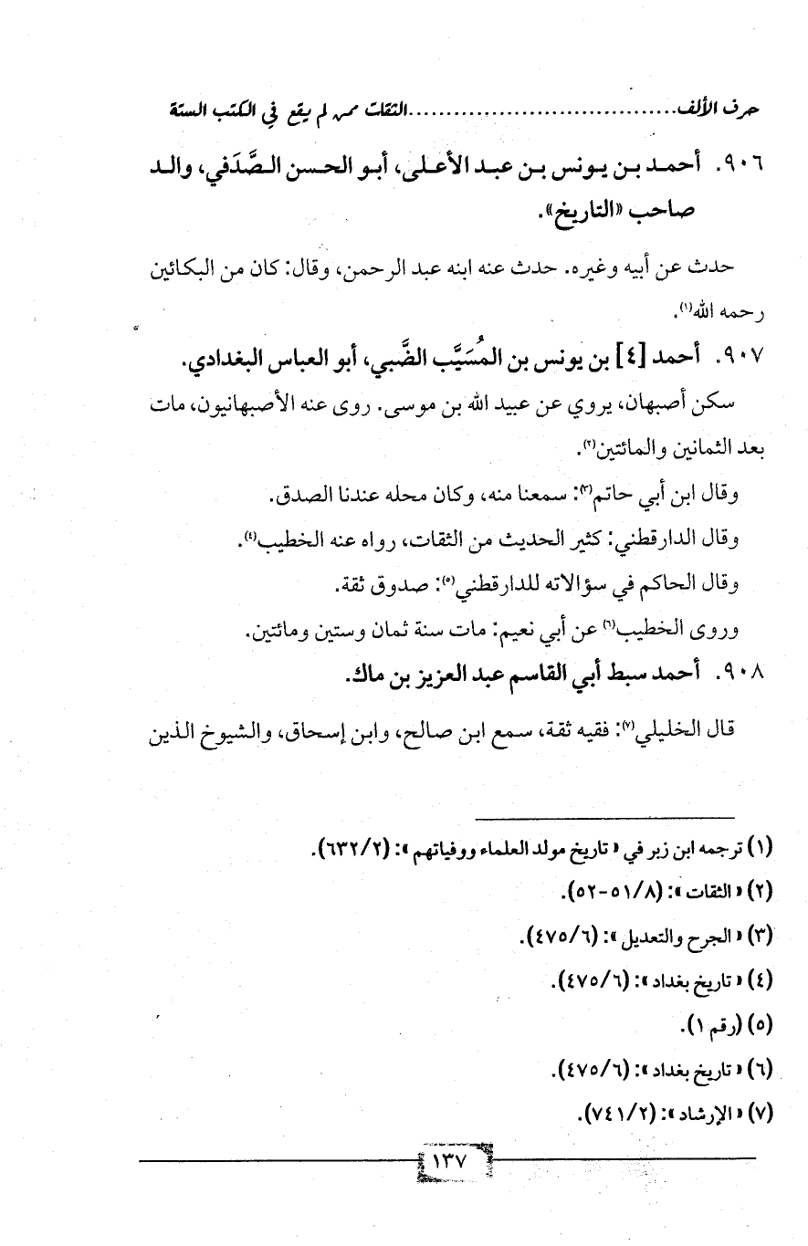 906 - أحمد بن يونس بن عبد الأعلى، أبو الحسن الصَّدَفي، والد صاحب «التاريخ».