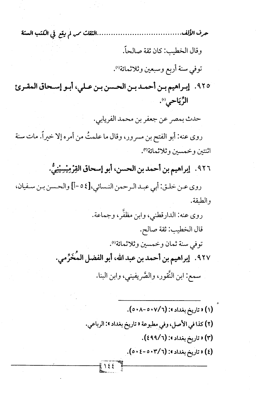(¬4) «تاريخ بغداد»: (6/ 503 - 504).
