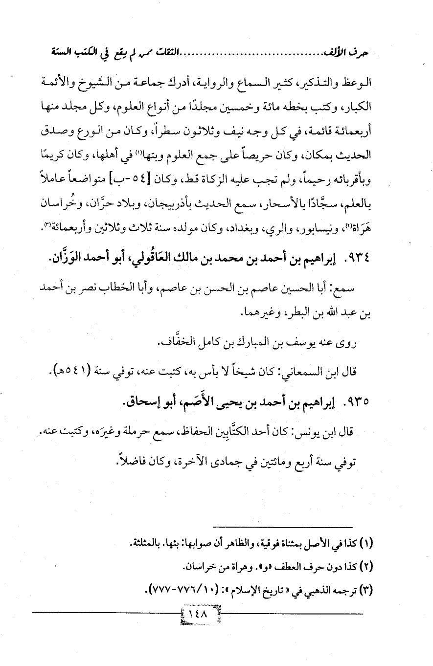 934 - إبراهيم بن أحمد بن محمد بن مالك العَاقُولي، أبو أحمد الوَزَّان.