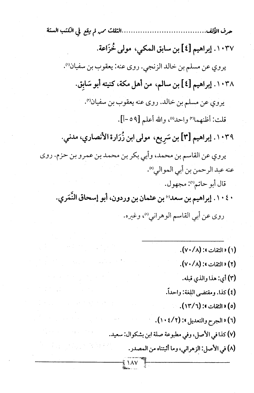 1038 - إبراهيم [4] بن سالم، من أهل مكة، كنيته أبو سَابِق.