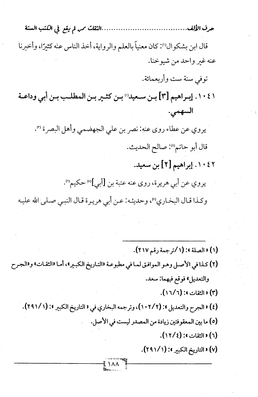 1041 - إبراهيم [3] بن سعيد (¬2) بن كثير بن المطلب بن أبي وداعة السهمي.