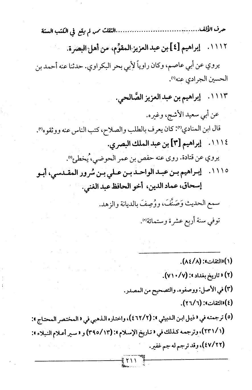1112 - إبراهيم [4] بن عبد العزيز المقوِّم، من أهل البصرة.