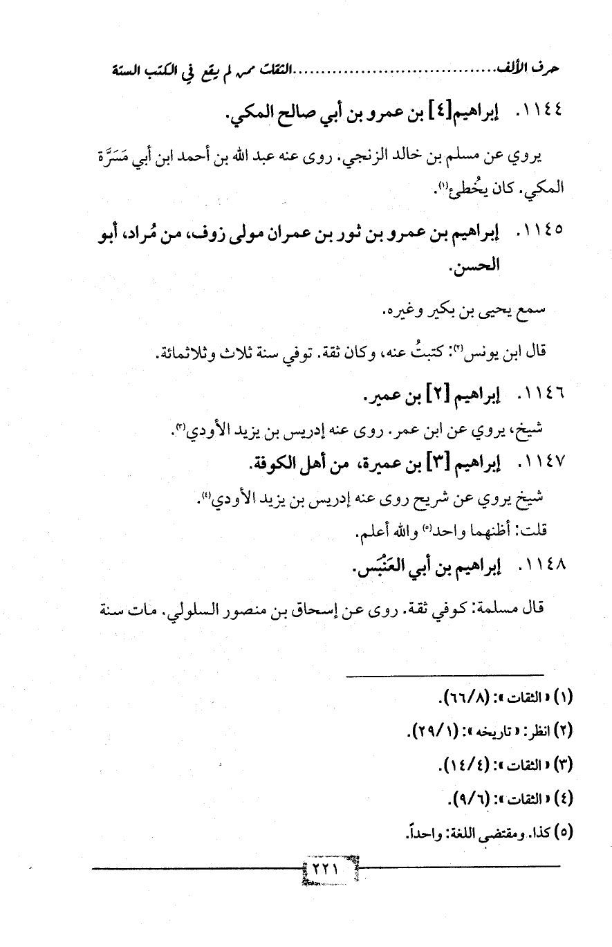 1145 - إبراهيم بن عمرو بن ثور بن عمران مولى زوف، من مُراد، أبو الحسن.