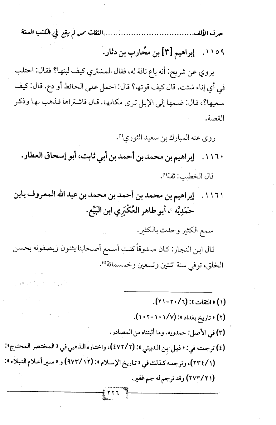 1161 - إبراهيم بن محمد بن أحمد بن محمد بن عبد الله المعروف بابن حَمَدِيَّه (¬3)، أبو طاهر العُكْبَرِي ابن البَيِّع.