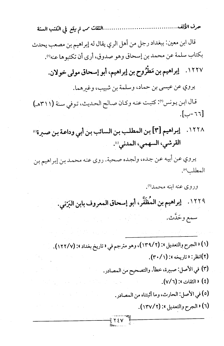 1227 - إبراهيم بن مَطْرُوح بن إبراهيم، أبو إسحاق مولى خولان.