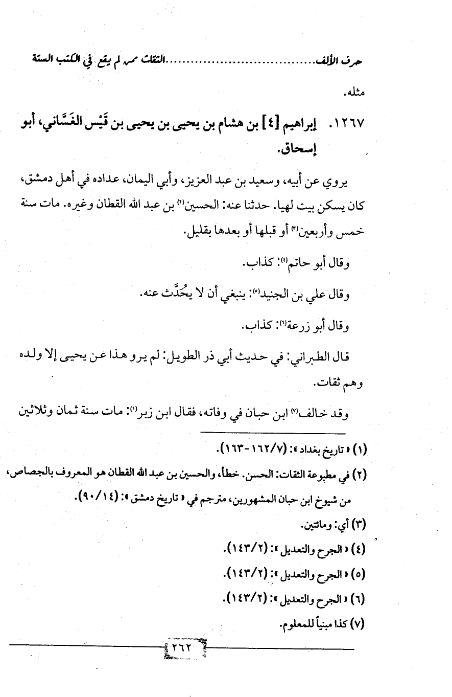 1267 - إبراهيم [4] بن هشام بن يحيى بن يحيى بن قَيْس الغَسَّاني، أبو إسحاق.