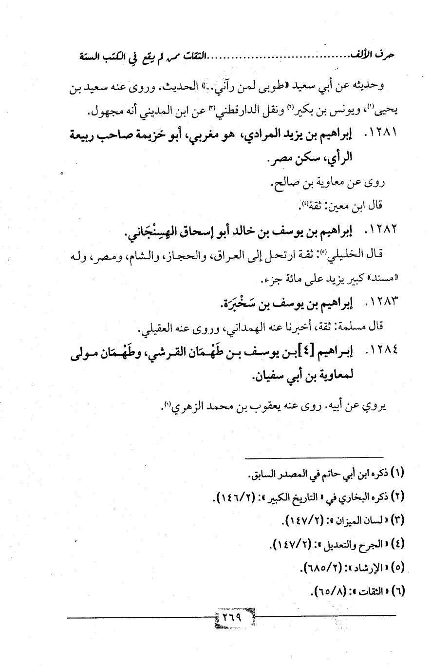 1281 - إبراهيم بن يزيد المرادي، هو مغربي، أبو خزيمة صاحب ربيعة الرأي، سكن مصر.
