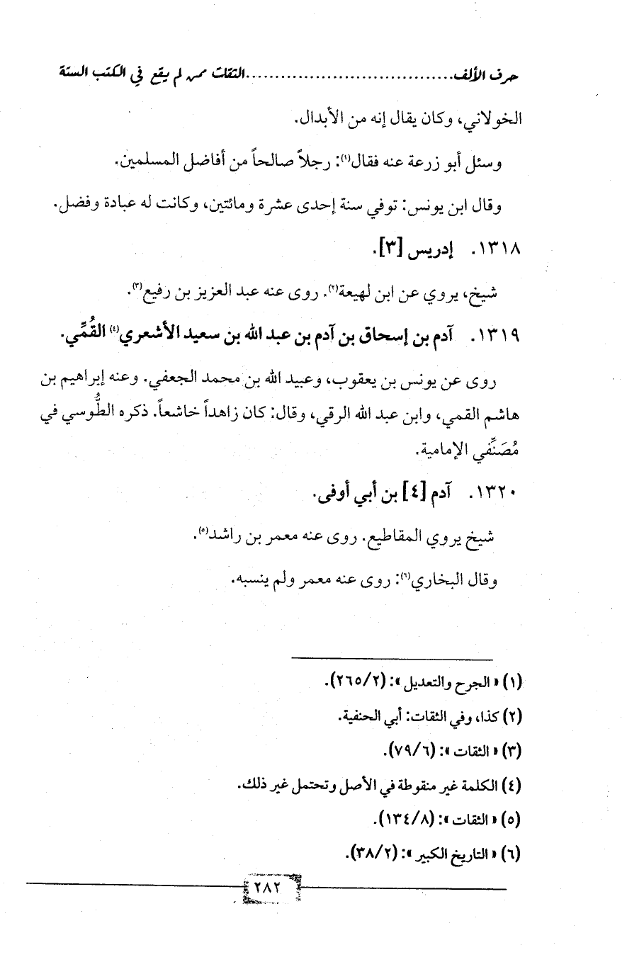1319 - آدم بن إسحاق بن آدم بن عبد الله بن سعيد الأشعري (¬4) القُمِّي.
