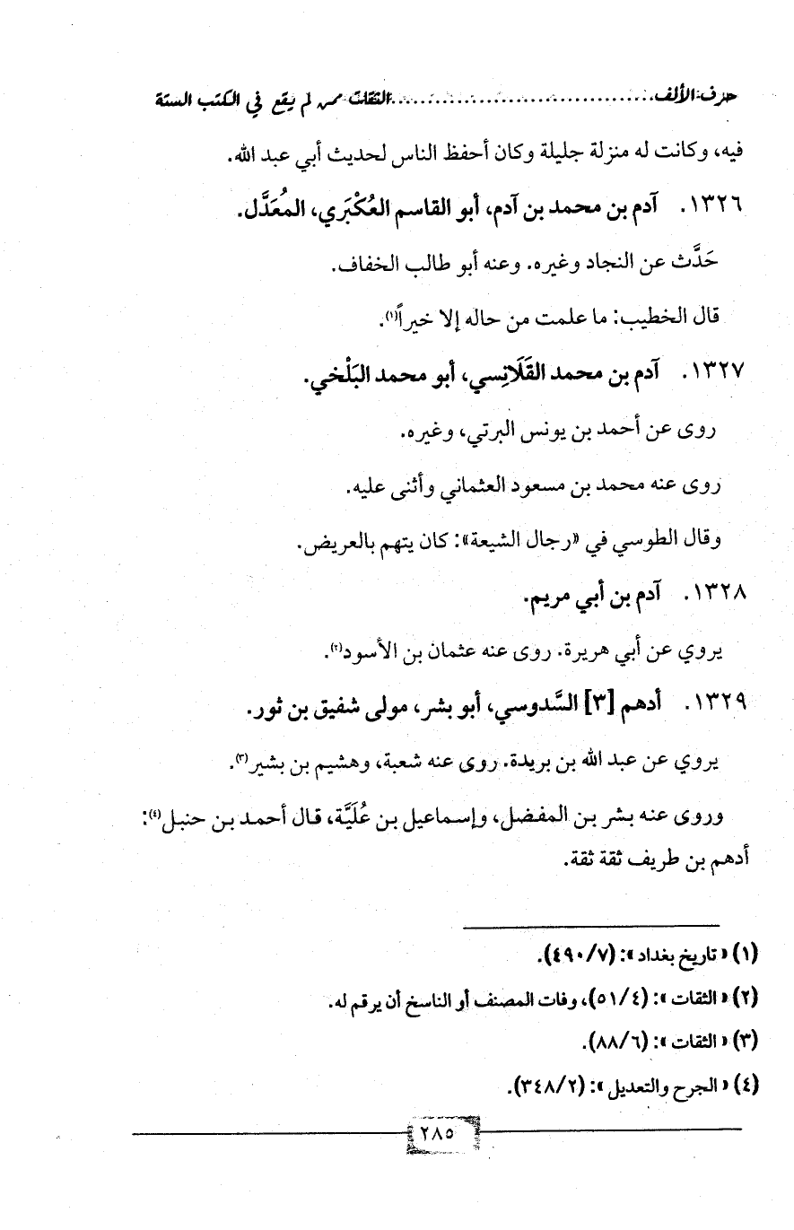 1327 - آدم بن محمد القَلَانِسي، أبو محمد البَلْخي.