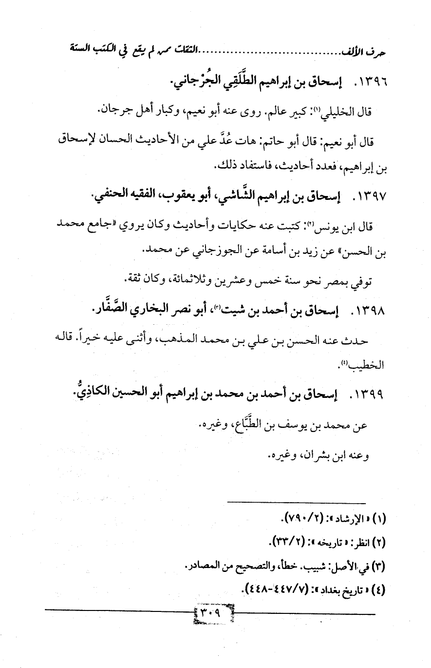 1396 - إسحاق بن إبراهيم الطَّلَقِي الجُرْجاني.
