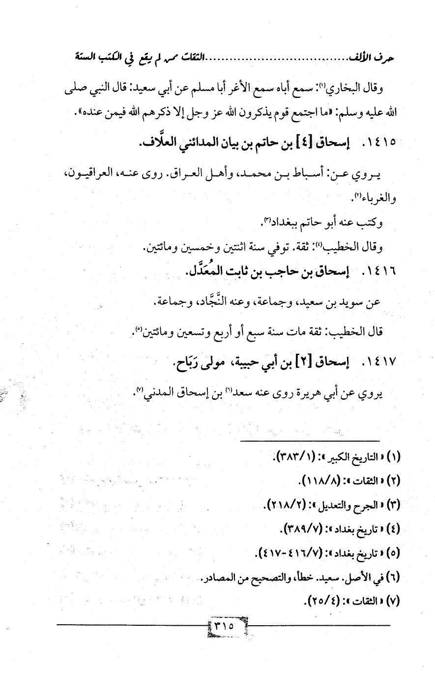 (¬5) «تاريخ بغداد»: (7/ 416 - 417).