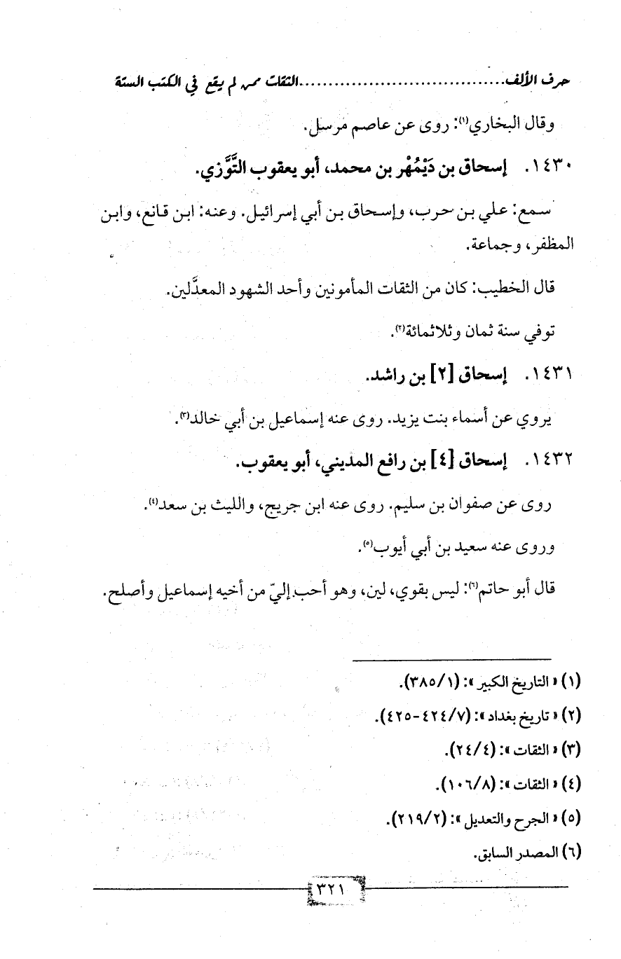 1430 - إسحاق بن دَيْمُهْر بن محمد، أبو يعقوب التَّوَّزي.