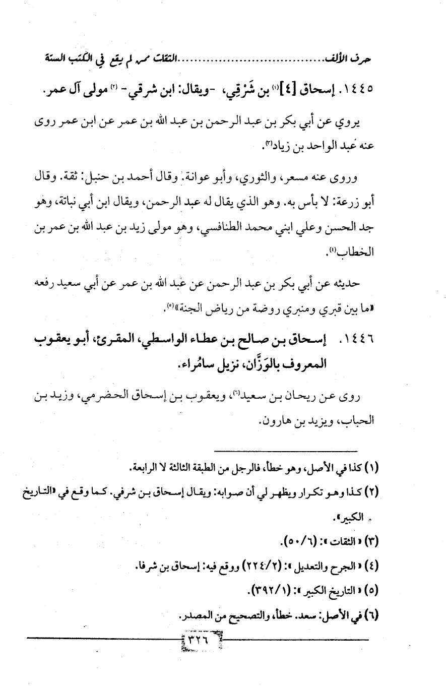 (¬4) «الجرح والتعديل»: (2/ 224) ووقع فيه: إسحاق بن شرفا.