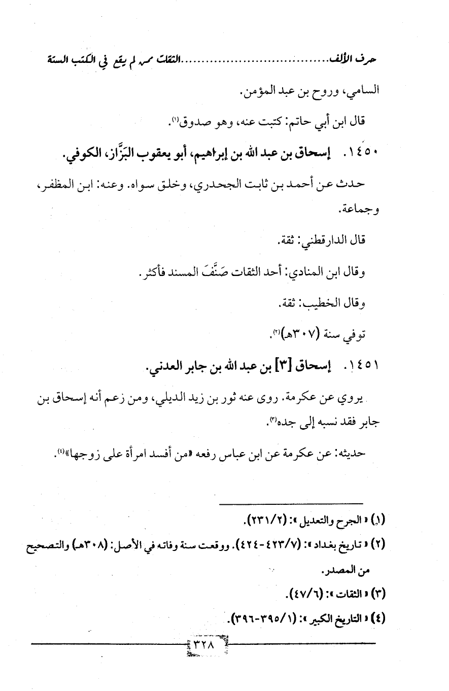 1450 - إسحاق بن عبد الله بن إبراهيم، أبو يعقوب البَزَّاز، الكوفي.