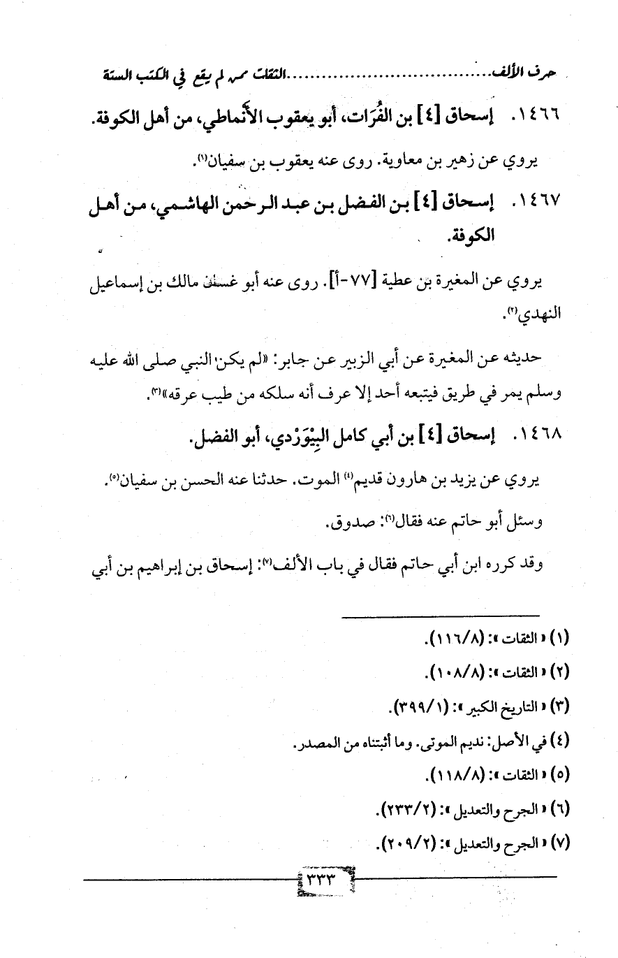 (¬6) «الجرح والتعديل»: (2/ 233).