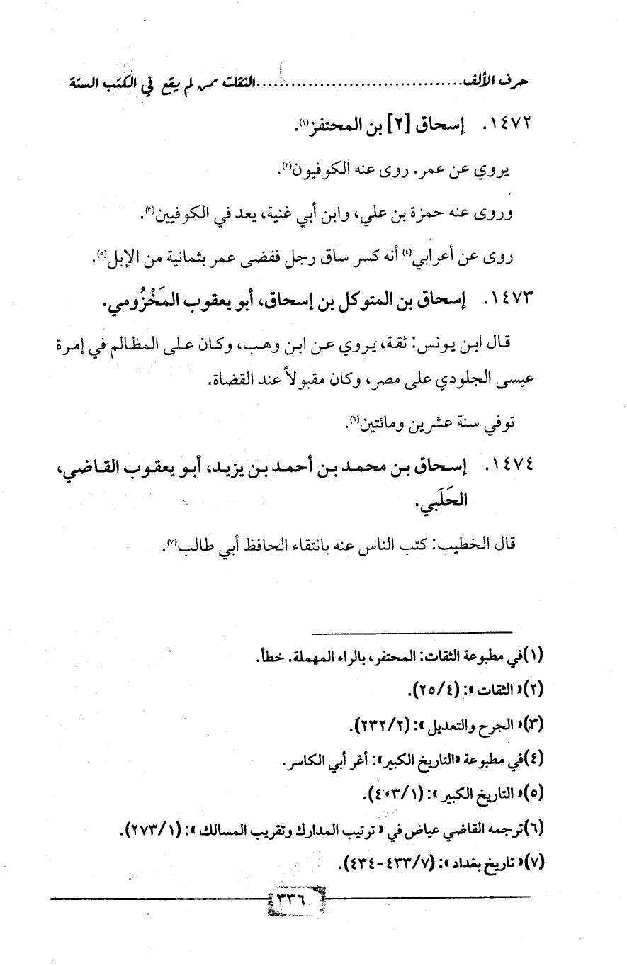 1473 - إسحاق بن المتوكل بن إسحاق، أبو يعقوب المَخْزُومي.