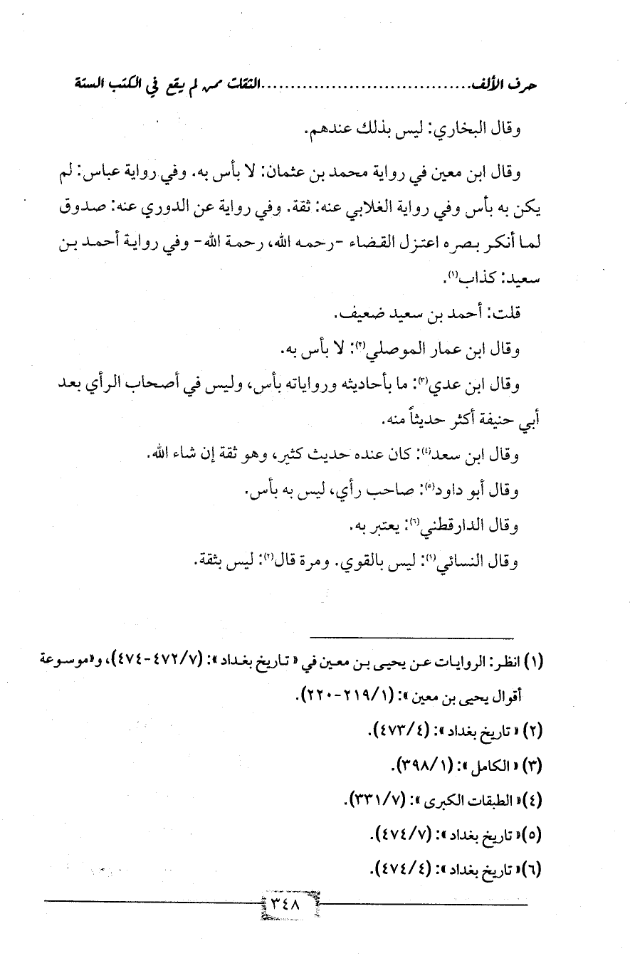 (¬1) انظر: الروايات عن يحيى بن معين في «تاريخ بغداد»: (7/ 472 - 474)، و «موسوعة أقوال يحيى بن معين»: (1/ 219 - 220).
