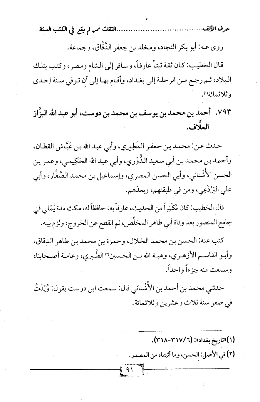 793 - أحمد بن محمد بن يوسف بن محمد بن دوست، أبو عبد الله البزَّاز العلَّاف.