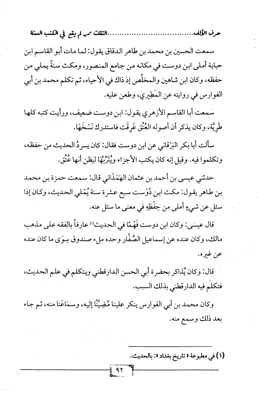 (¬1) في مطبوعة «تاريخ بغداد»: بالحديث.