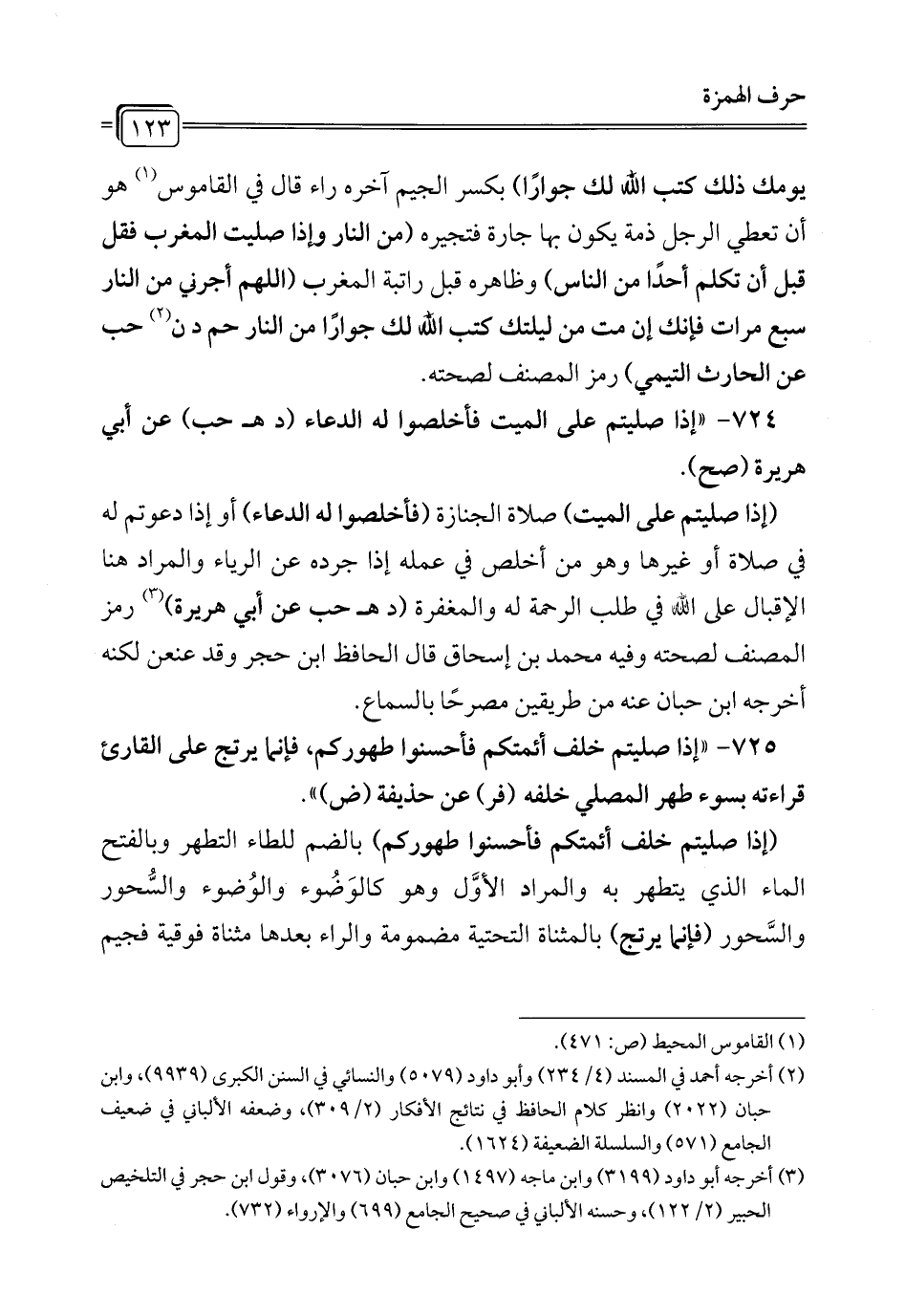 724 - " إذا صليتم على الميت فأخلصوا له الدعاء (د هـ حب) عن أبي هريرة (صح).