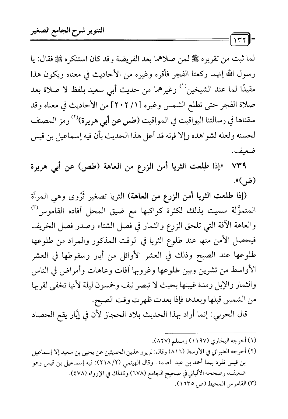 739 - "إذا طلعت الثريا أمن الزرع من العاهة (طص) عن أبي هريرة (ض) ".