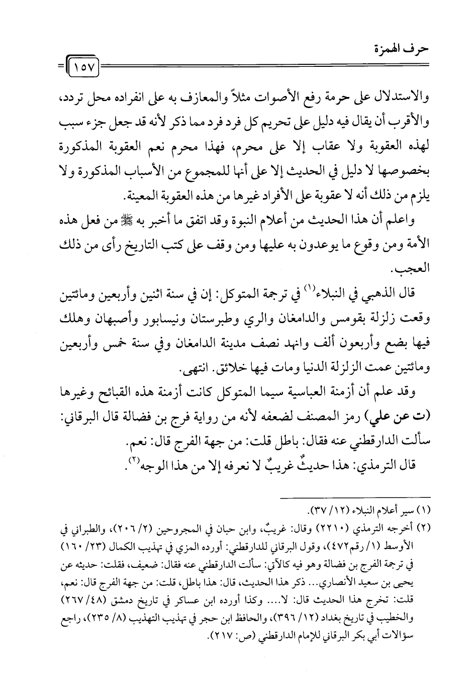 (¬2) أخرجه الترمذي (2210) وقال: غريبٌ، وابن حبان في المجروحين (2/ 206)، والطبراني في الأوسط (1/ رقم 472)، وقول البرقاني للدارقطني: أورده المزي في تهذيب الكمال (23/ 160) في ترجمة الفرج بن فضالة وهو فيه كالآتي: سألت الدارقطني عنه فقال: ضعيف، فقلت: حديثه عن يحيى بن سعيد الأنصاري ... ذكر هذا الحديث، قال: هذا باطل، قلت: من جهة الفرج قال: نعم، قلت: تخرج هذا الحديث قال: لا .... وكذا أورده ابن عساكر في تاريخ دمشق (48/ 267) والخطيب في تاريخ بغداد (12/ 396)، والحافظ ابن حجر في تهذيب التهذيب (8/ 235)، راجع سؤالات أبي بكر البرقاني للإمام الدارقطني (ص: 217).