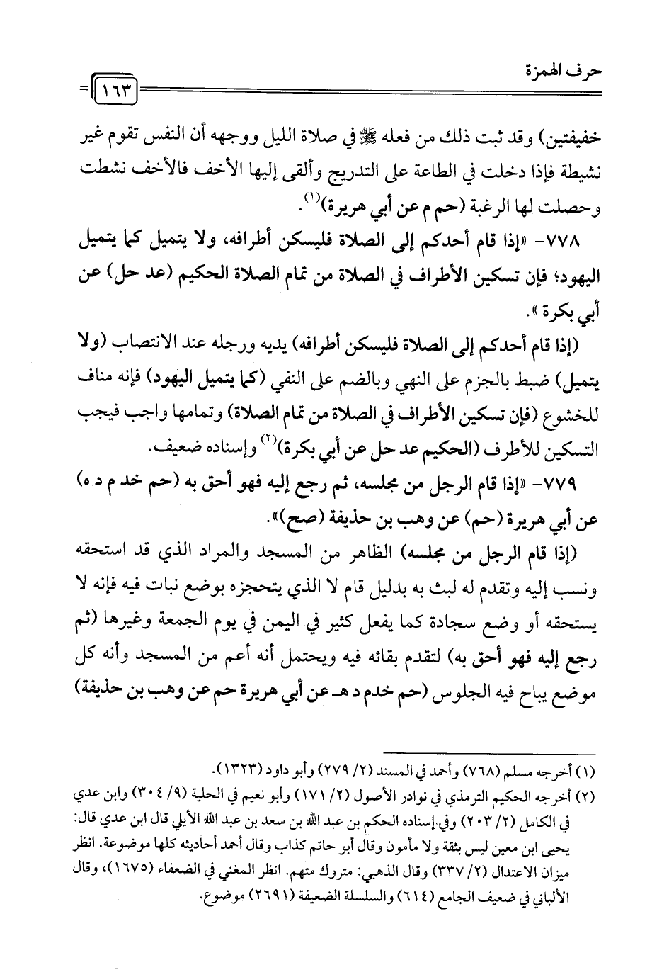 778 - " إذا قام أحدكم إلى الصلاة فليسكن أطرافه، ولا يتميل كما يتميل اليهود؛ فإن تسكين الأطراف في الصلاة من تمام الصلاة الحكيم (عد حل) عن أبي بكرة".