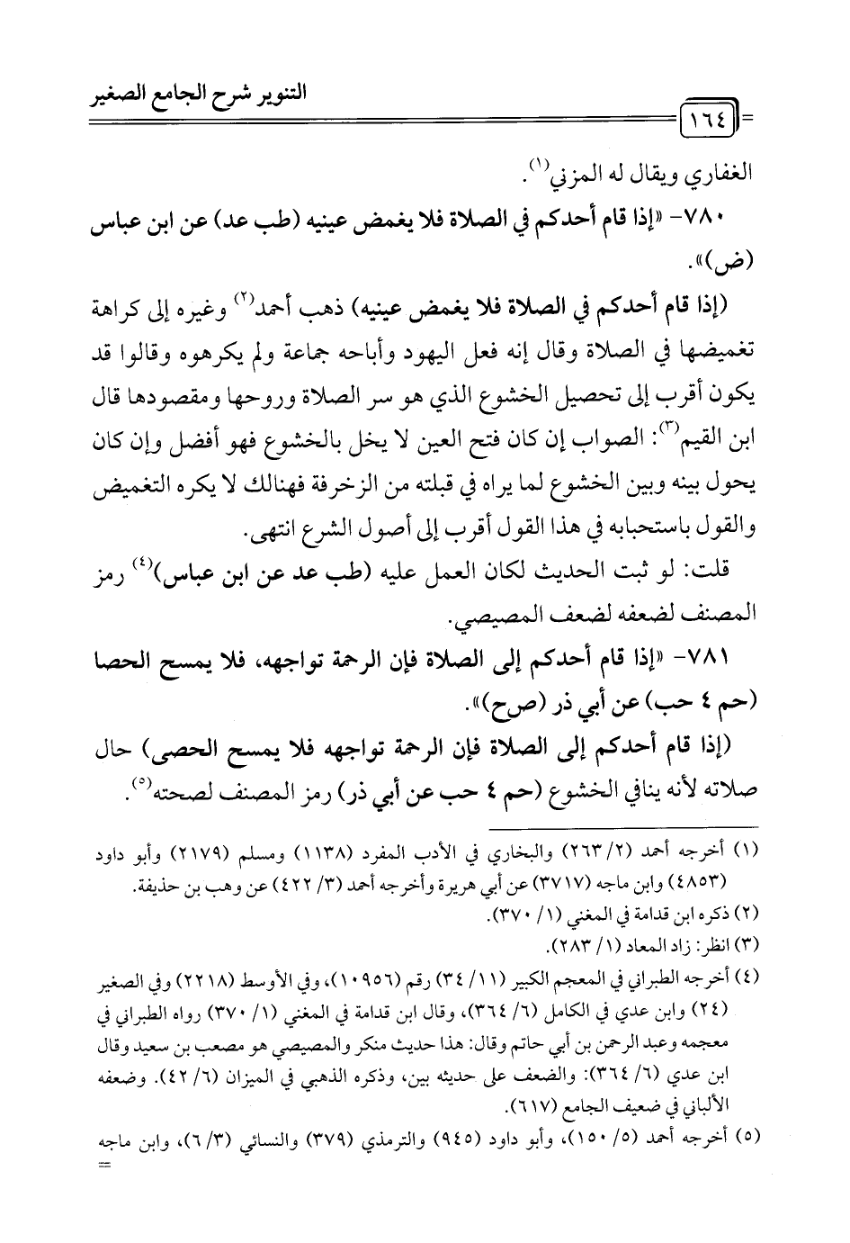 780 - " إذا قام أحدكم في الصلاة فلا يغمض عينيه (طب عد) عن ابن عباس (ض) ".
