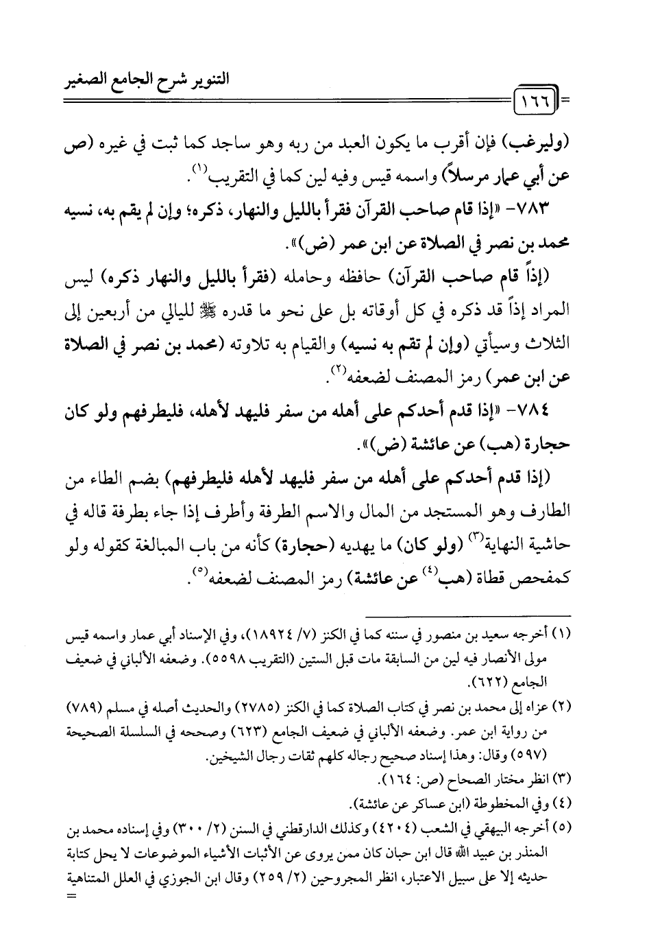 783 - " إذا قام صاحب القرآن فقرأ بالليل والنهار، ذكره؛ وإن لم يقم به, نسيه محمد بن نصر في الصلاة عن ابن عمر (ض) ".