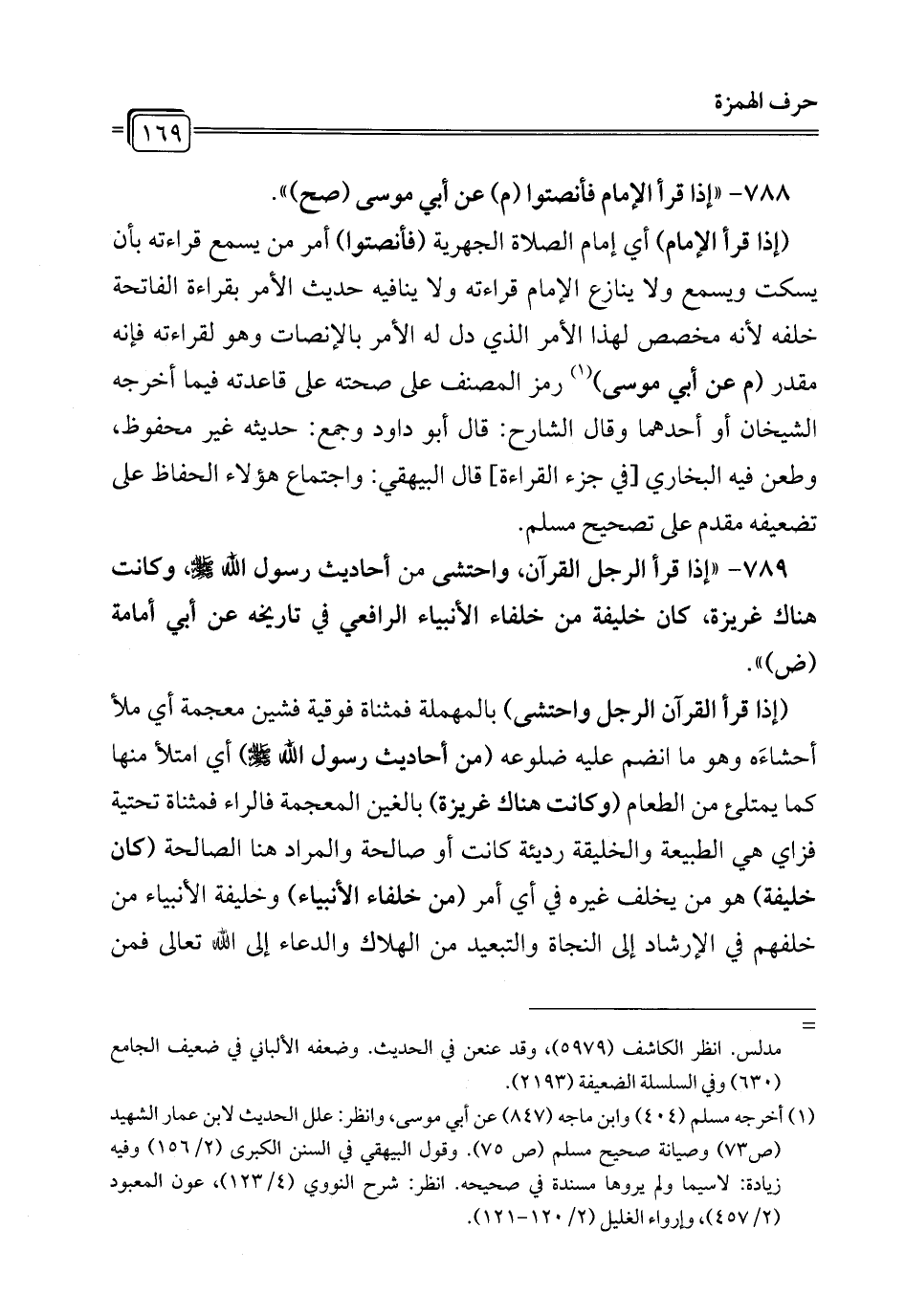 788 - " إذا قرأ الإِمام فأنصتوا (م) عن أبي موسى (صح) ".