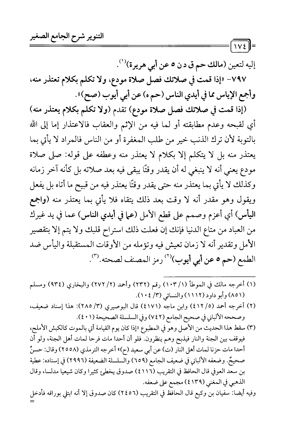 797 - " إذا قمت في صلاتك فصل صلاة مودع، ولا تكلم بكلام تعتذر منه, وأجمع الإياس مما في أيدي الناس (حم هـ) عن أبي أيوب (صح) ".