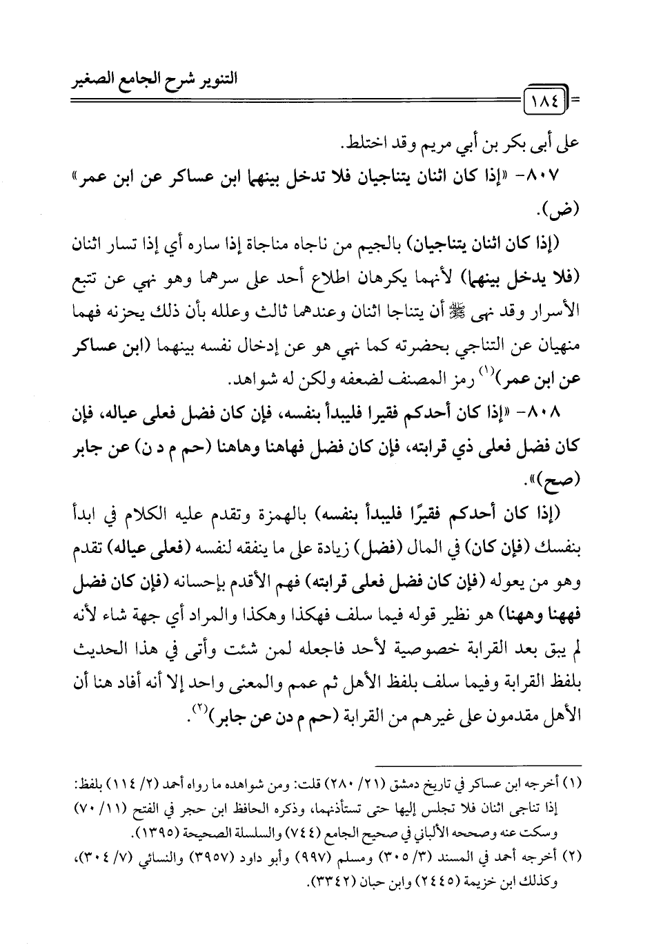 807 - " إذا كان اثنان يتناجيان فلا تدخل بينهما ابن عساكر عن ابن عمر" (ض).