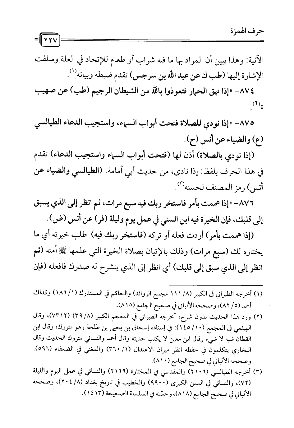 874 - " إذا نهق الحمار فتعوذوا بالله من الشيطان الرجيم (طب) عن صهيب" (¬2).