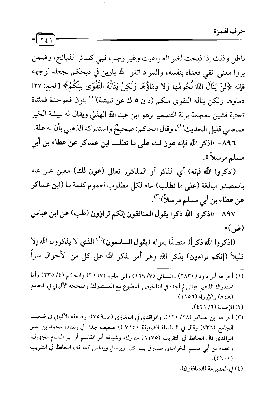 897 - "اذكروا الله ذكرا يقول المنافقون إنكم تراؤون (طب) عن ابن عباس (ض) "