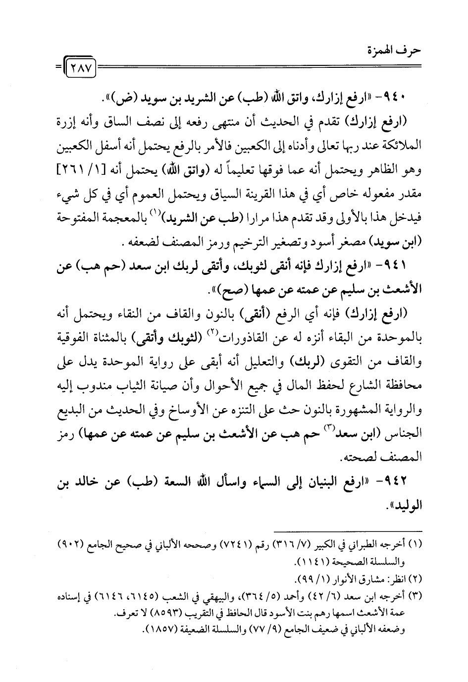 940 - "ارفع إزارك، واتق الله (طب) عن الشريد بن سويد (ض) ".