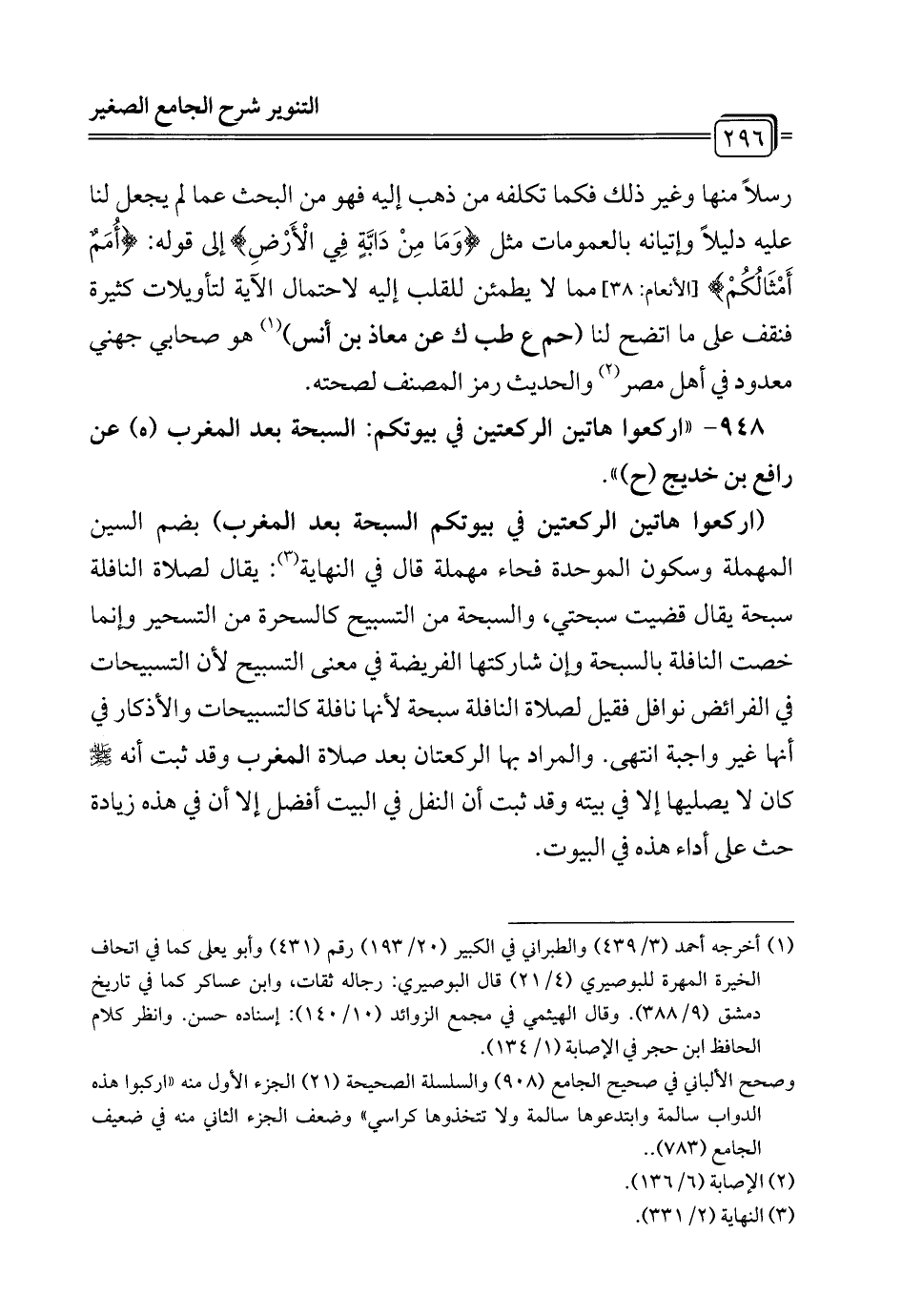 948 - "اركعوا هاتين الركعتين في بيوتكم: السبحة بعد المغرب (هـ) عن رافع بن خديج (ح) ".