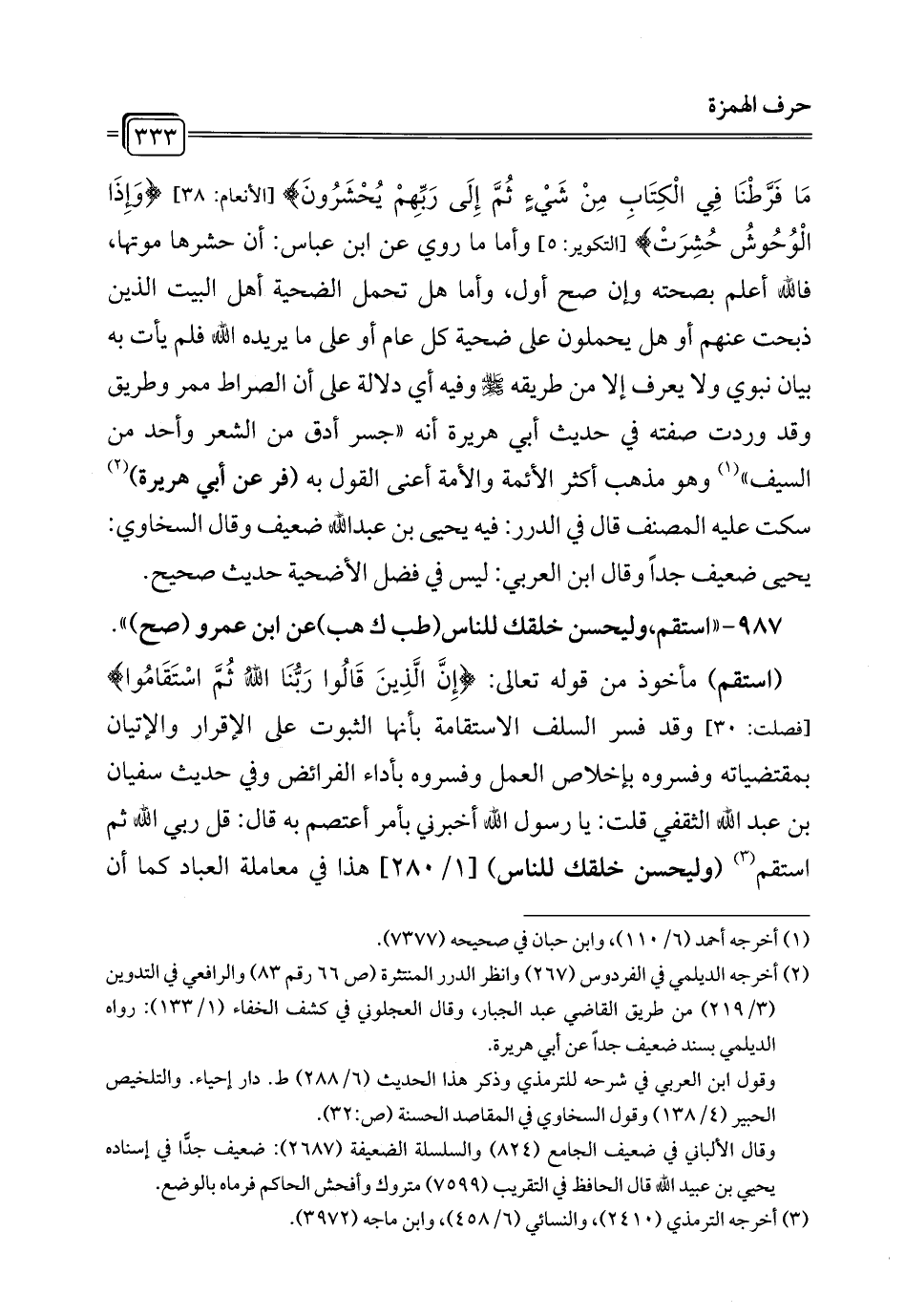 987 - "استقم، وليحسن خلقك للناس (طب ك هب) عن ابن عمرو (صح) ".