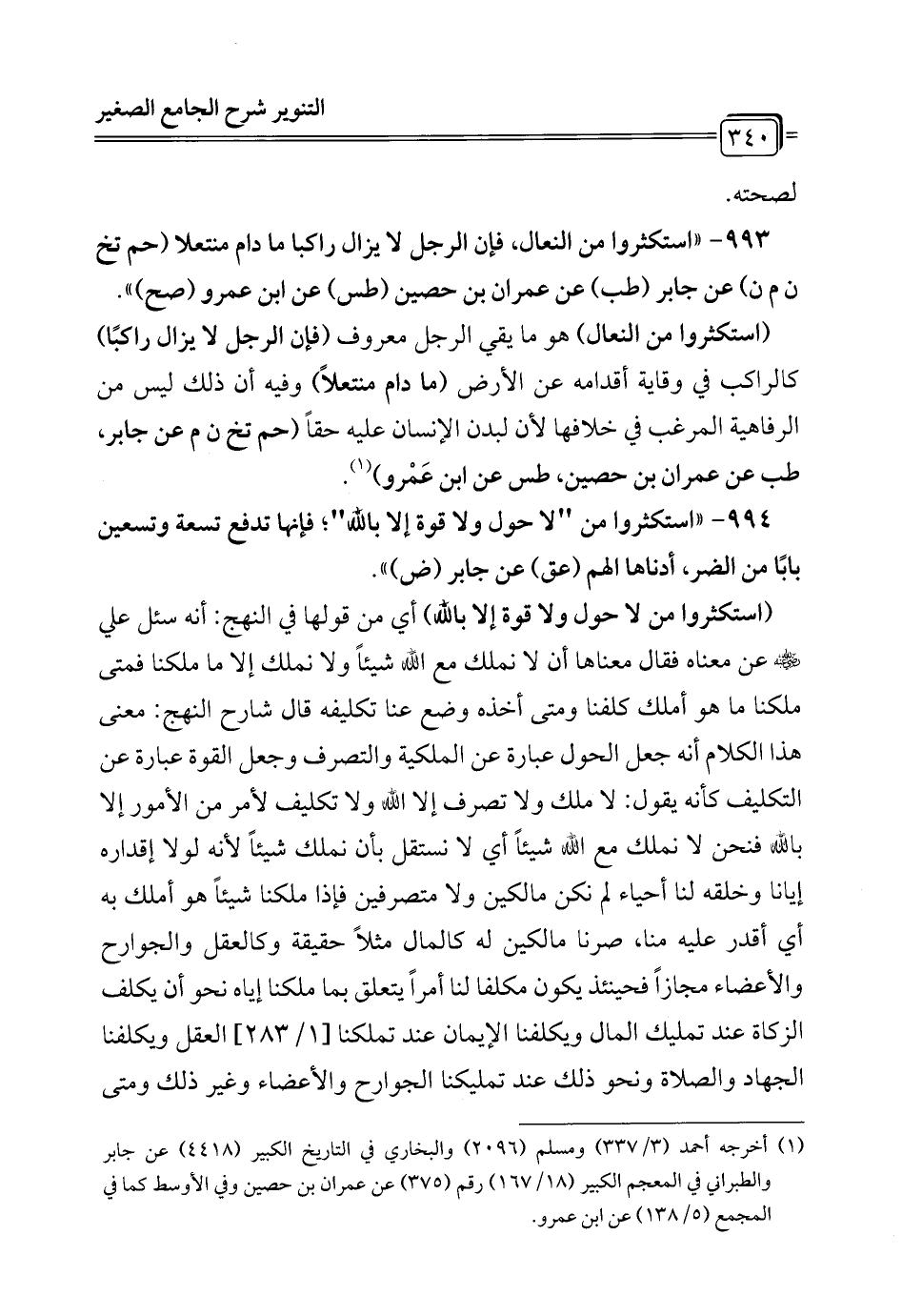 993 - "استكثروا من النعال، فإن الرجل لا يزال راكباً ما دام منتعلا (حم تخ ن م ن) عن جابر (طب) عن عمران بن حصين (طس) عن ابن عمرو (صح) ".