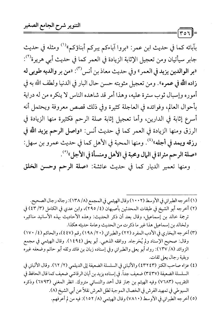 (¬3) أخرجه البخاري في الأدب المفرد (22) والطبراني (20/ 198) رقم (447)، والحاكم (4/ 170) وقال: صحيح الإسناد ولم يُخرجاه. ووافقه الذهبي. أبو يعلى (1494). وقال الهيثمي في مجمع الزوائد (8/ 137): رواه أبو يعلى والطبراني وفي إسناده زبان بن فائد وثقه أبو حاتم وضعفه غيره وبقية رجال يعلى ثقات.