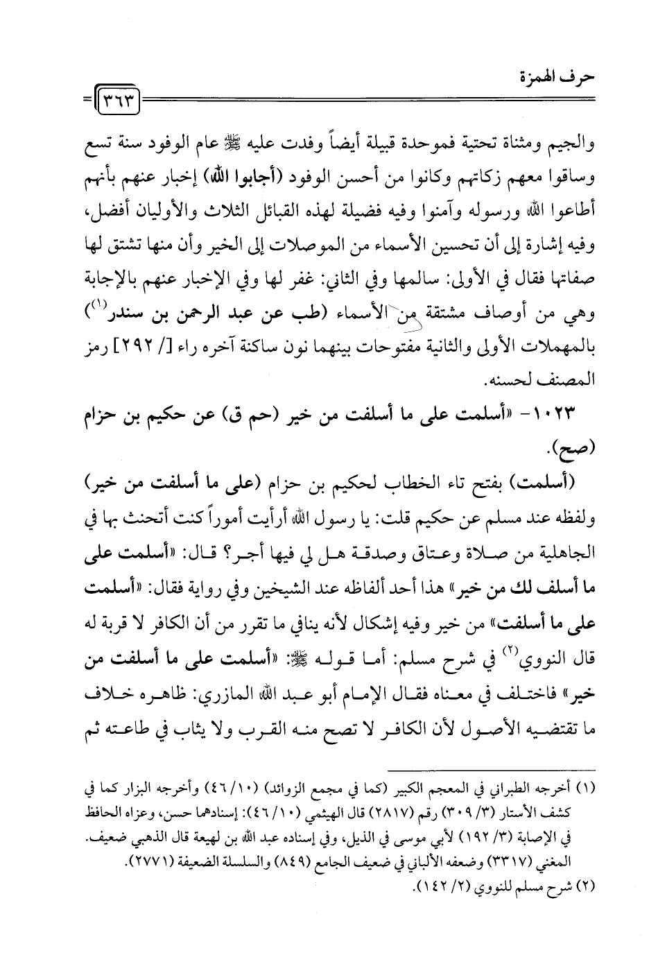 1023 - "أسلمت على ما أسلفت من خير (حم ق) عن حكيم بن حزام (صح).