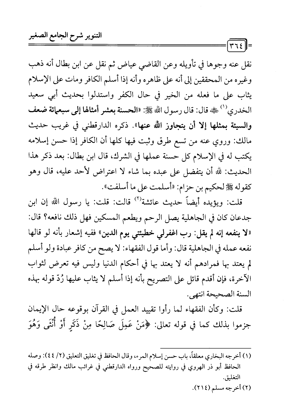 (¬1) أخرجه البخاري معلقاً، باب حسن إسلام المرء، وقال الحافظ في تغليق التعليق (2/ 44): وصله الحافظ أبو ذر الهروي في روايته للصحيح ورواه الدارقطني في غرائب مالك وانظر طرقه في التغليق.