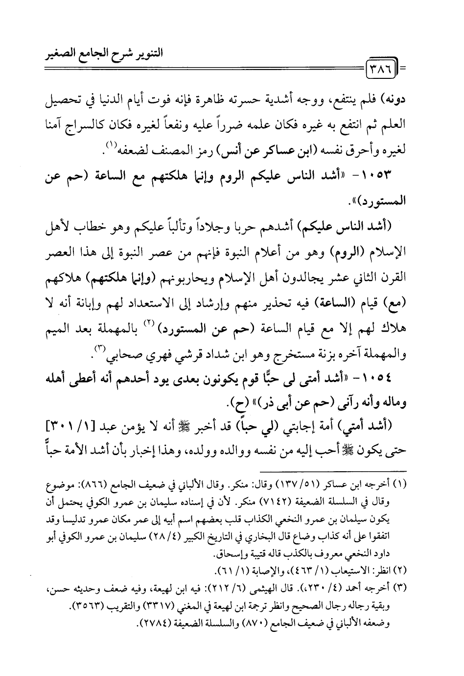 1053 - "أشد الناس عليكم الروم وإنما هلكتهم مع الساعة (حم عن المستورد) ".