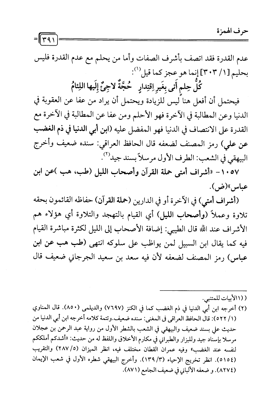 عدم القدرة فقد اتصف بأشرف الصفات وأما من يحلم مع عدم القدرة فليس بحليم [1/ 303] إنما هو عجز كما قيل (¬1):