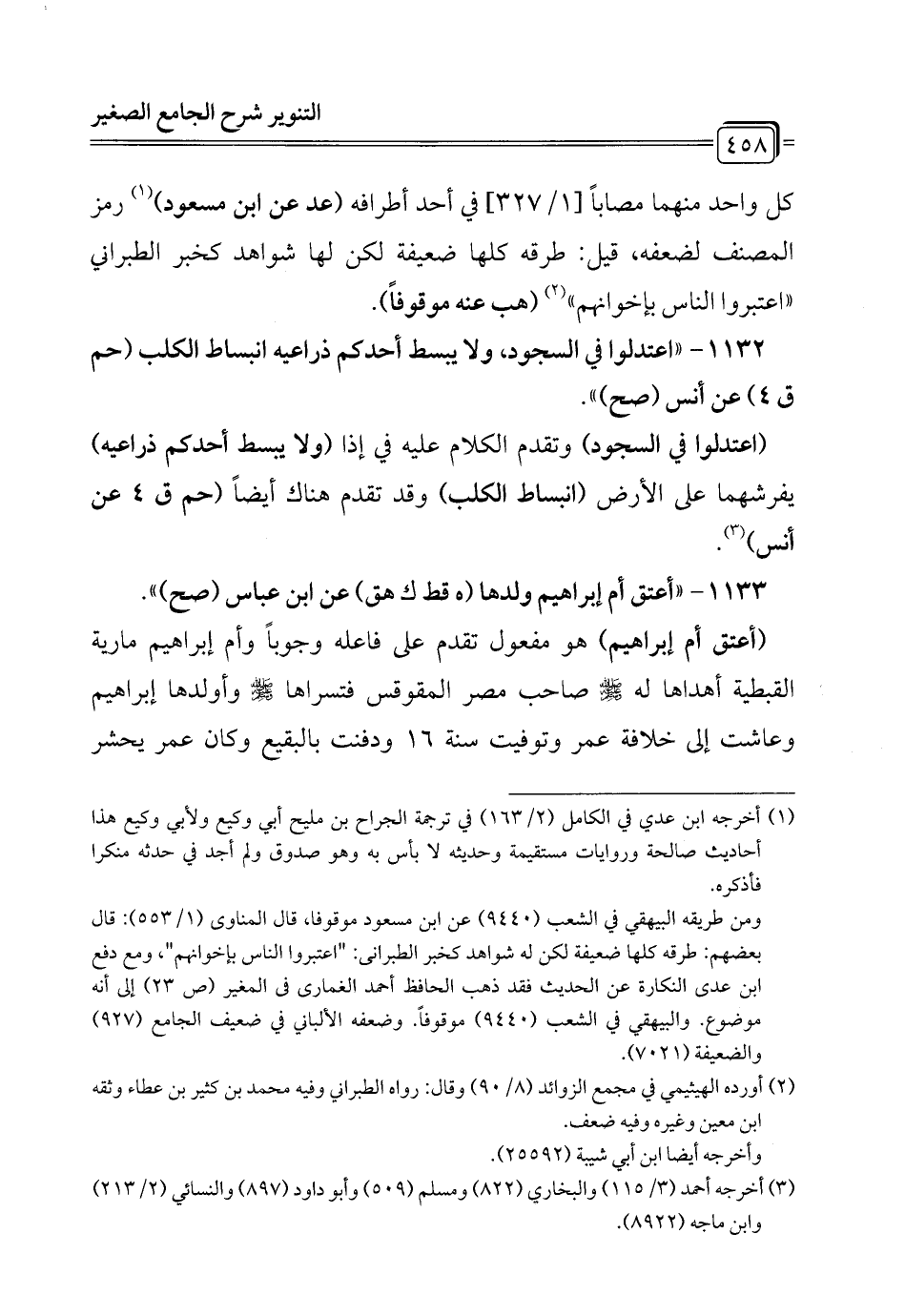 1133 - "أعتق أم إبراهيم ولدها (هـ قط ك هق) عن ابن عباس (صح) ".