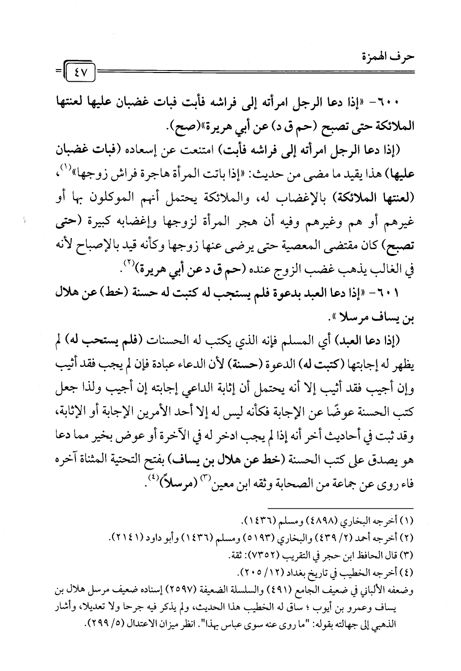 600 - " إذا دعا الرجل امرأته إلى فراشه فأبت فبات غضبان عليها لعنتها الملائكة حتى تصبح (حم ق د) عن أبي هريرة" (صح).
