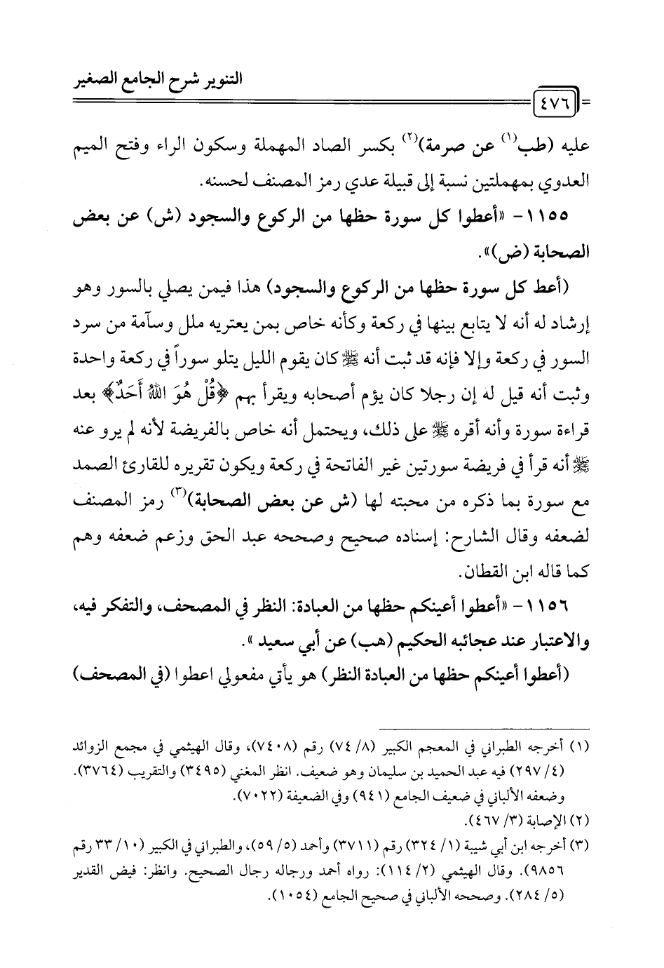 1155 - "أعطوا كل سورة حظها من الركوع والسجود (ش) عن بعض الصحابة (ض) ".