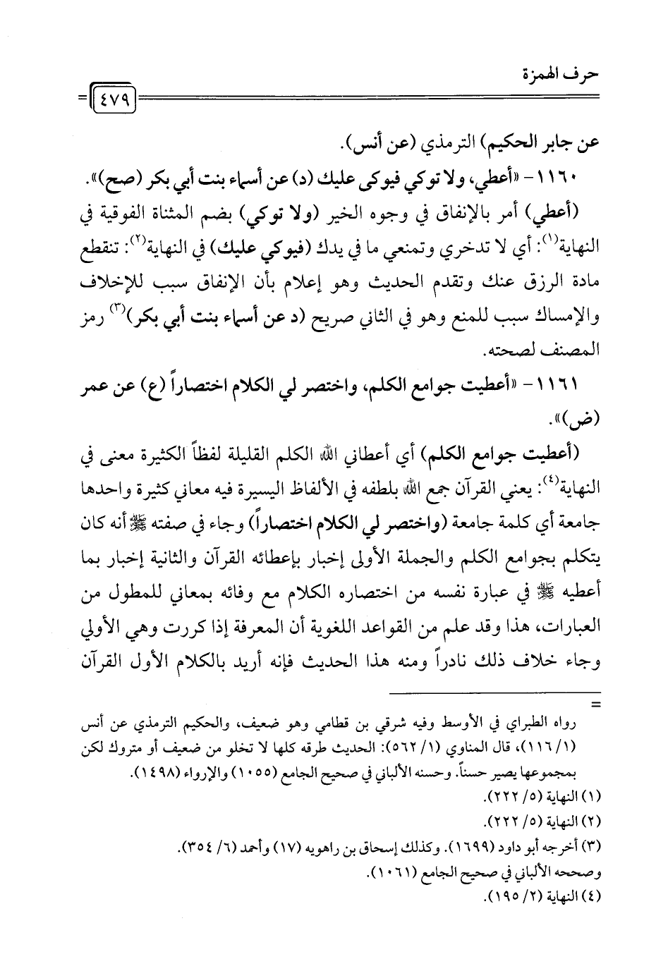 1160 - "أعطي، ولا توكي فيوكى عليك (د) عن أسماء بنت أبي بكر (صح) ".